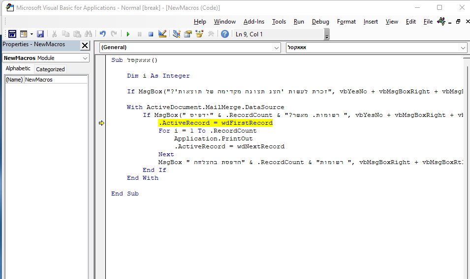 כרגע אני מנסה להעתיק את המאקרו מחדש אבל גם זה הוא לא מרשה לי.