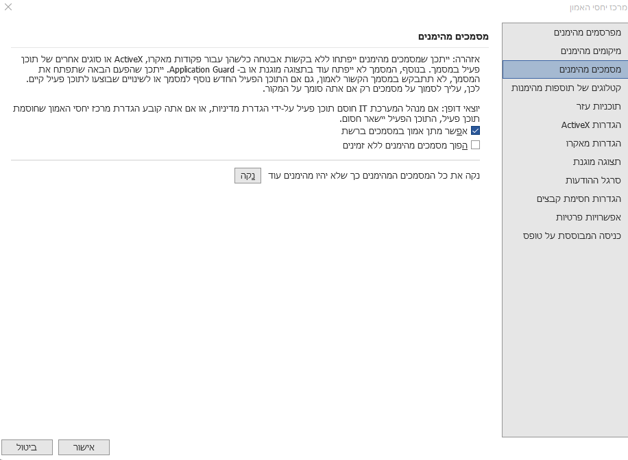 צריך להפוך את המסמך או המיקום (התיקיה בה המסמך למהימנים)