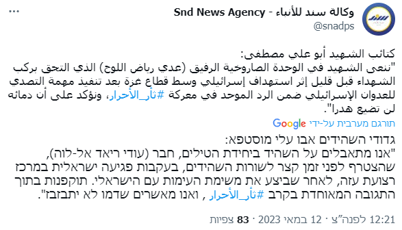 ההרוג במרכז רצועת עזה - שייך למערך הרקטי של גדודי אבו עלי מוסטפא (הזרוע הצבאית של החזית העממית).