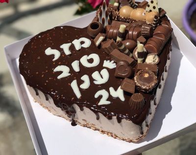 עוגת לב חצויה לשניים ולכתוב