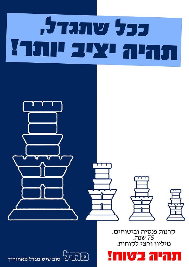 ההבטחה הפרסומית: עם 'מגדל' אתה יכול להיות בטוח שבעת זקנה תוכל לחיות בכבוד.
