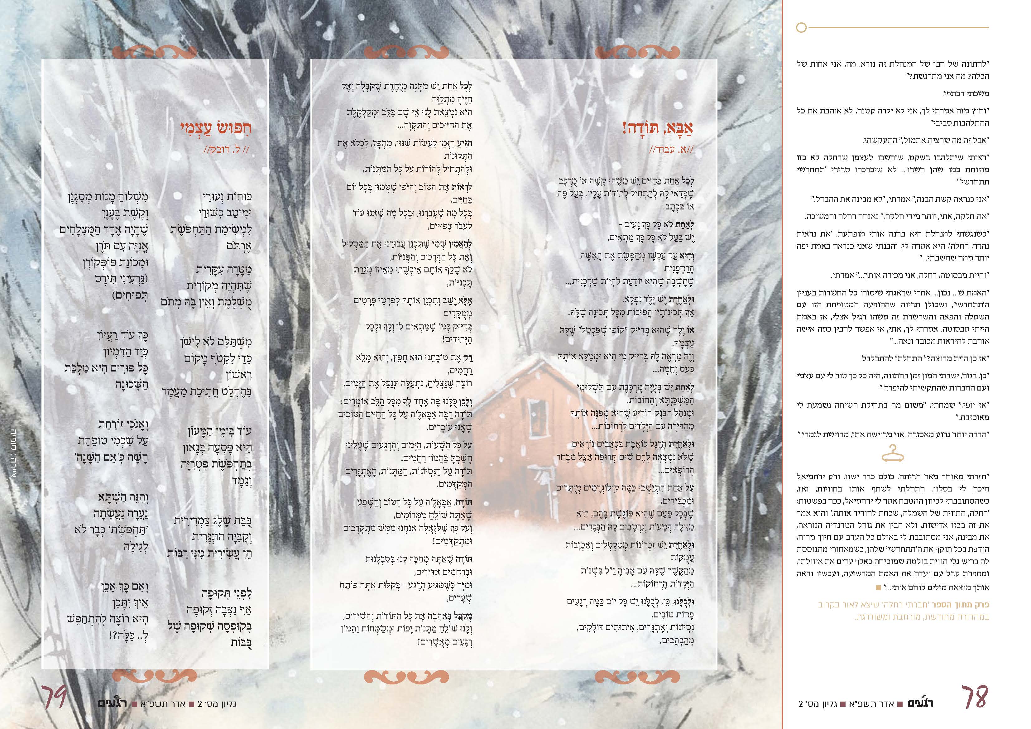 רבניתי ריכזה את החומר ועמדה מול הכותבות, ואני עימדתי את החוברת, כן... הרבה זמן לקח, כשבועיים עבודה רצופים, והרבה מסקנות מהמגזין הקודם.