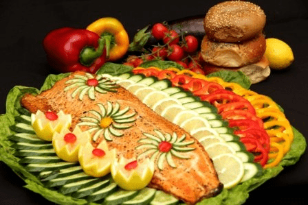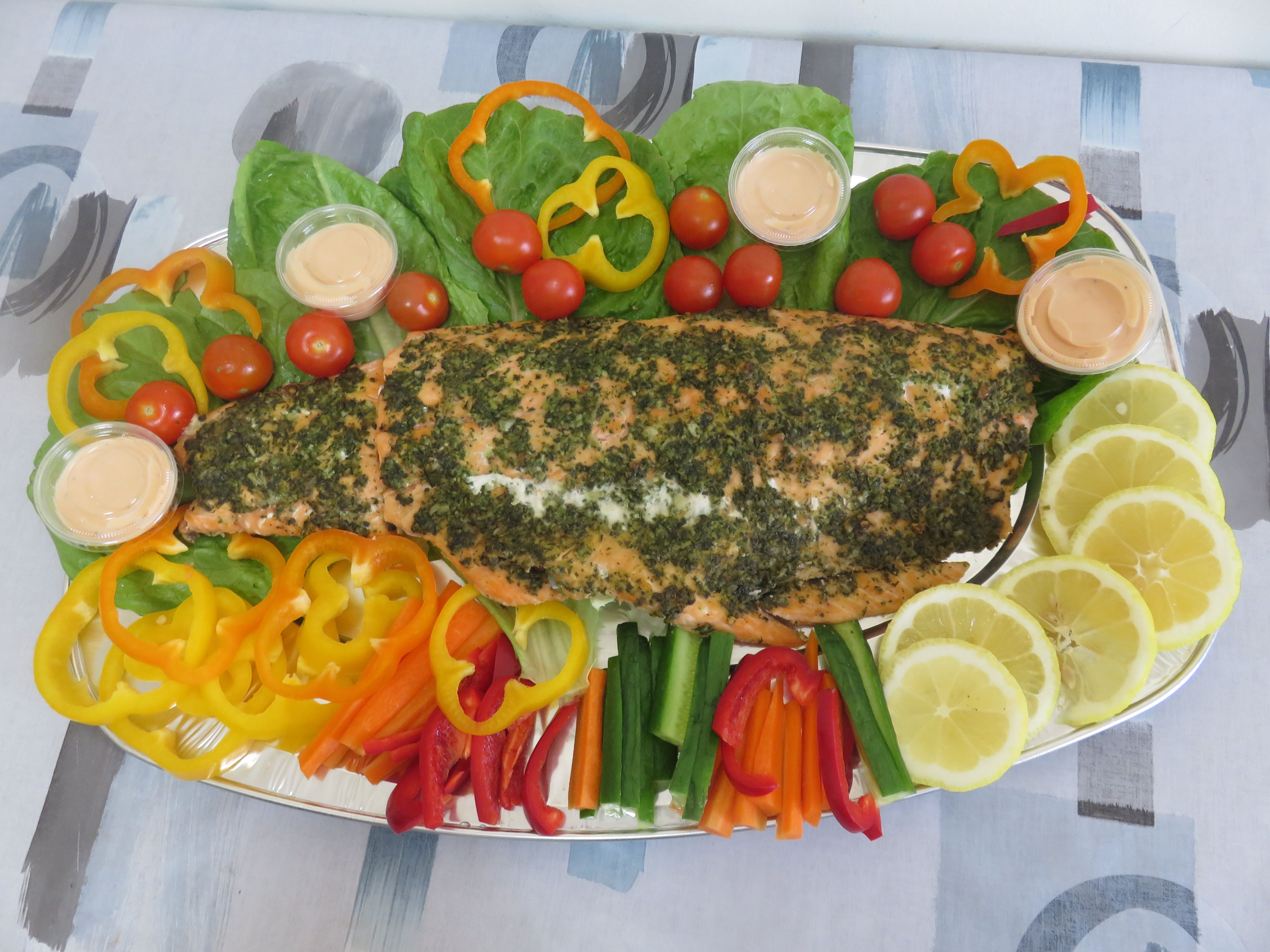 דגים מגש פילה סלומון גדול בעיטור ירקות