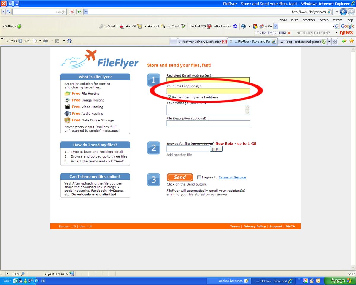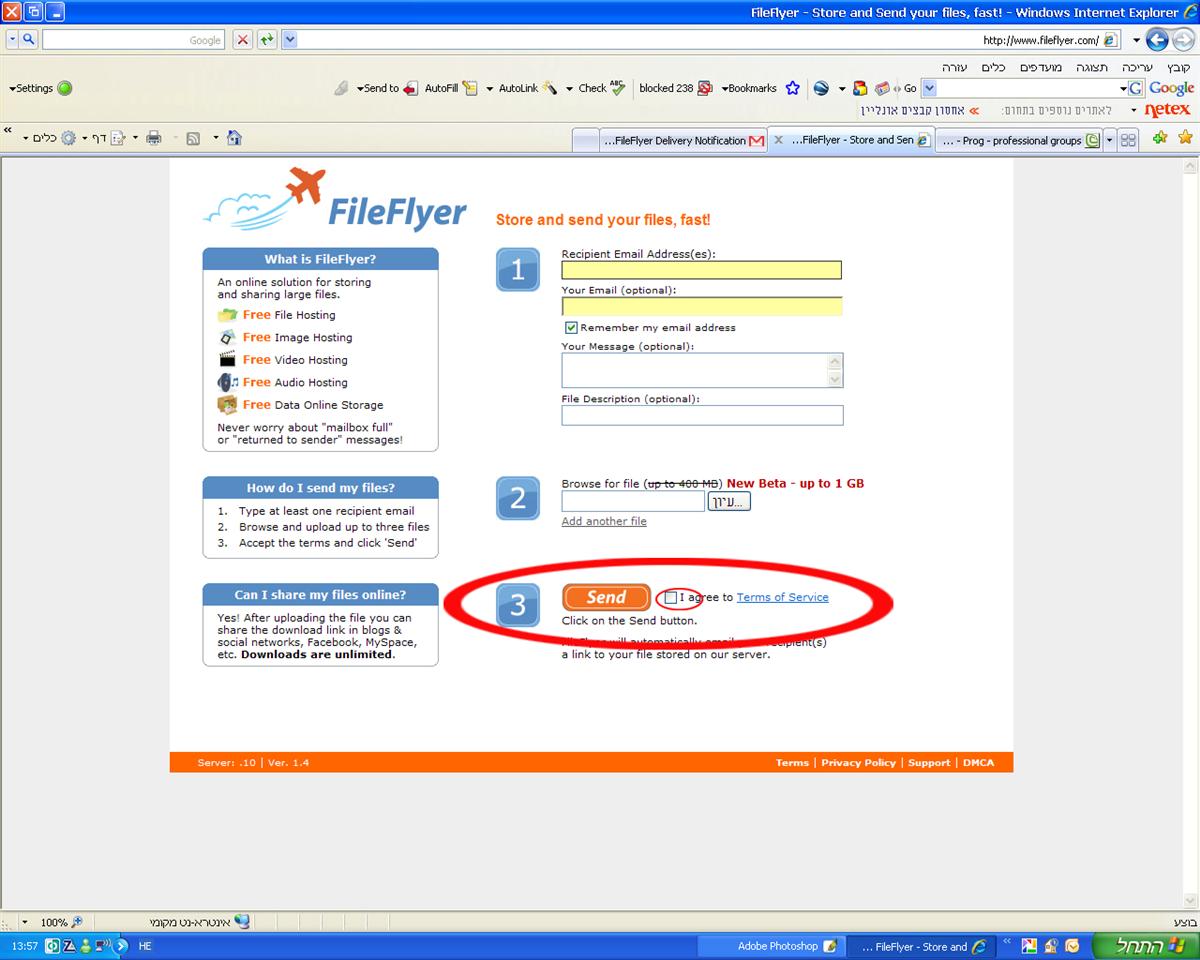 יש אתר שנקרא פייל פליי שאפשר לעלות בו עד 1 גיגה