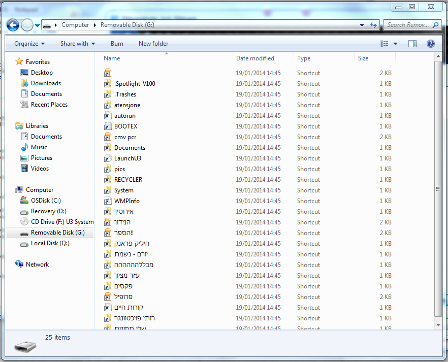 עוד פתרון פשוט להחזרת הקבצים המוסתרים ומחיקת קיצורי הדרך.