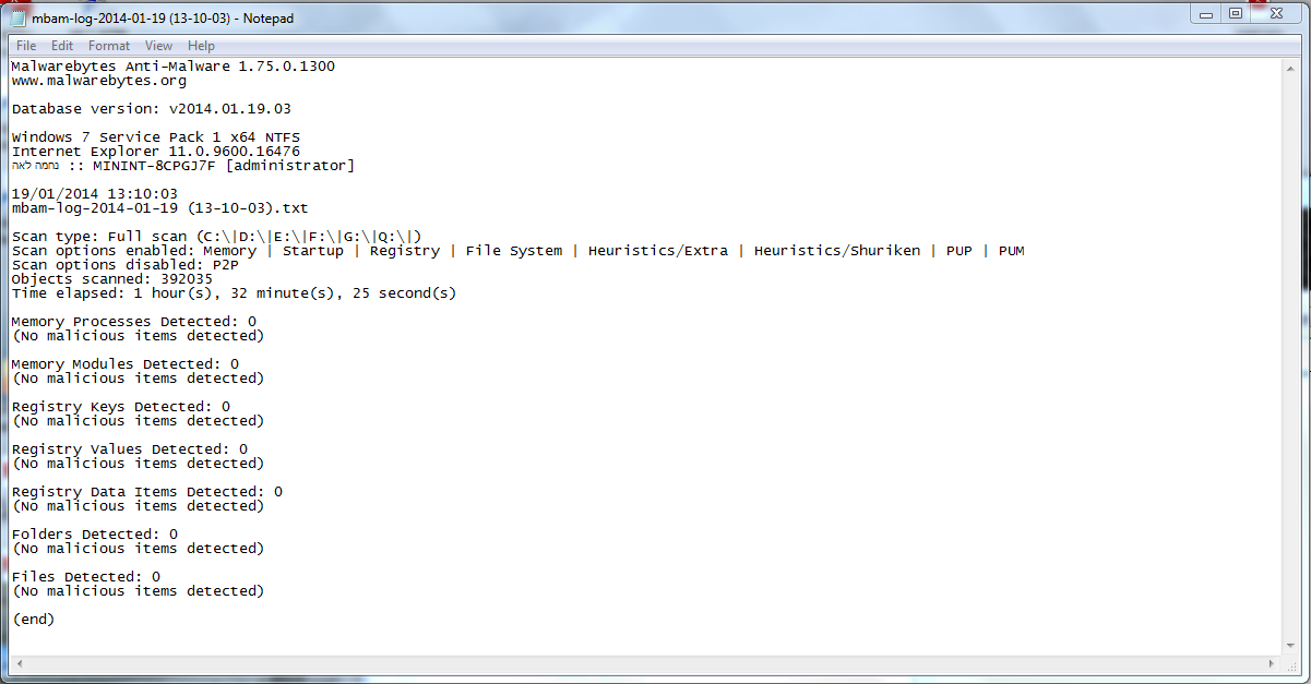 פעם ראשונה מצא וירוס אחד - מחקתי.