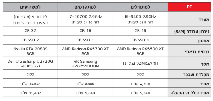 שיתוף מדריך מעודכן לקניית מחשב לגרפיקה