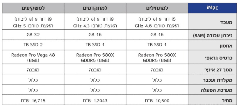 יגאל לוי (מנטור) סקר את ההבדלים בין PC ל-MAC ונתן מפרטים מומלצים למתחילים, מתקדמים ומשקיעים.