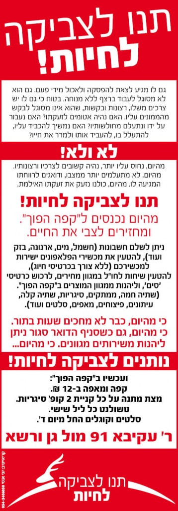 קוראים לבוסים לרחם על הצביקה שלהם ולשחרר אותו להפסקה - לקנות משהו ב"קפה הפוך"