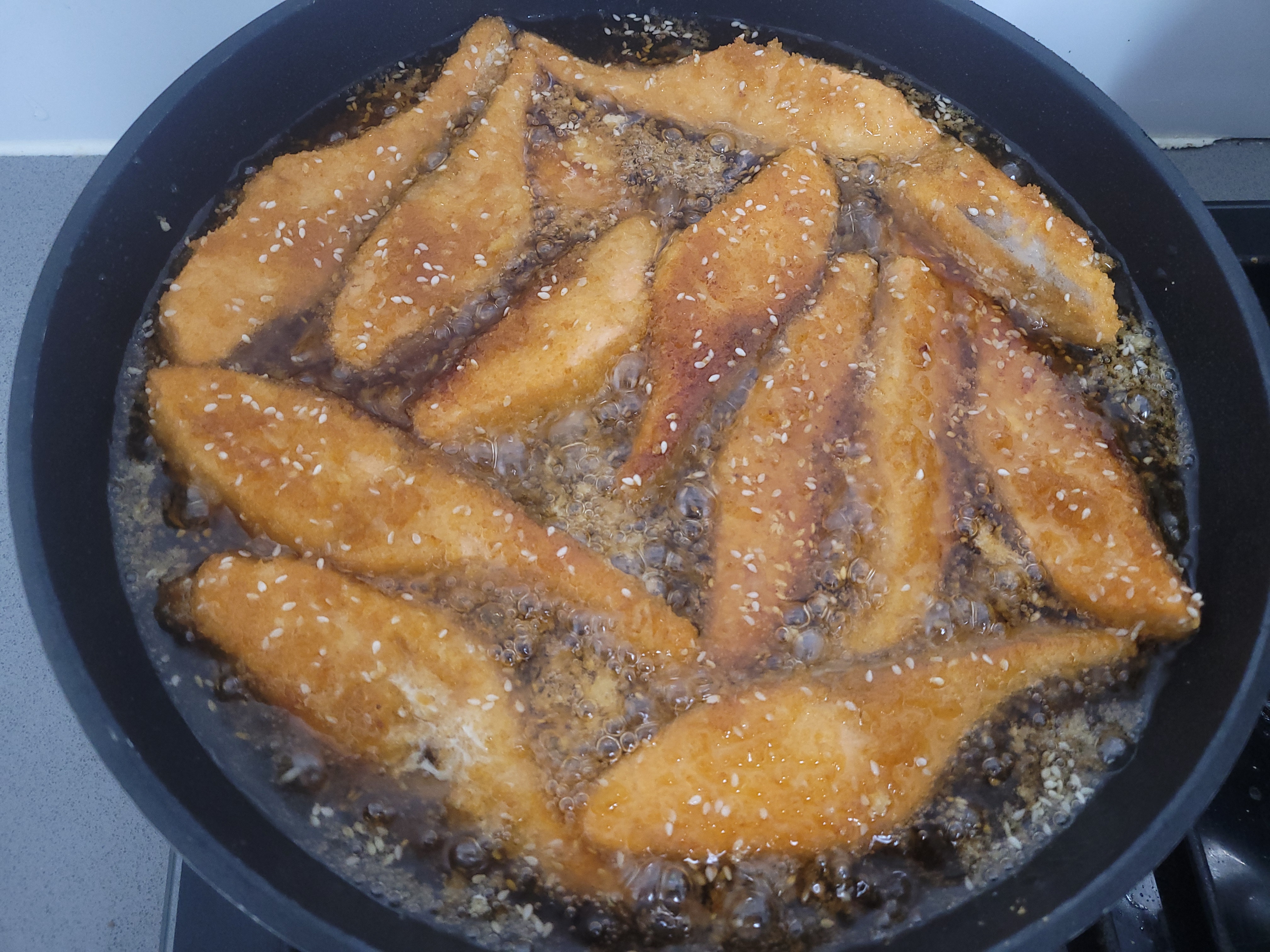 סלמון מטוגן, מצופה פירורי לחם.