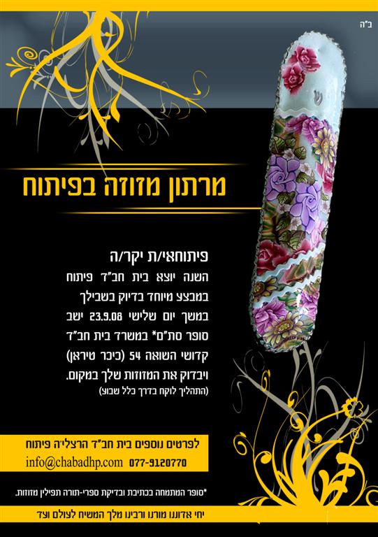 המזוזה במודעה הראשונה מאד מתאימה לדעתי. החיתוך לא מושלם- יש הילה לבנה מסביב למזוזה