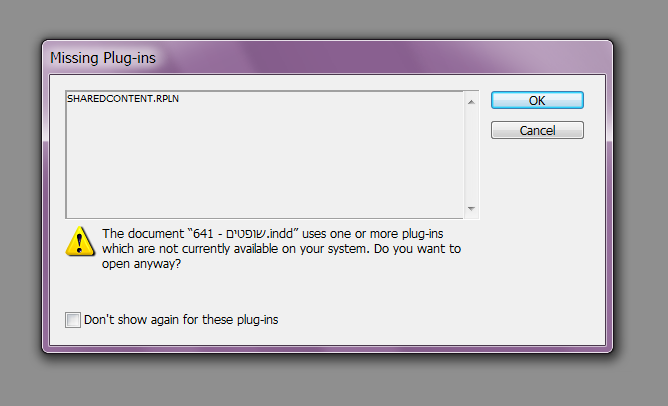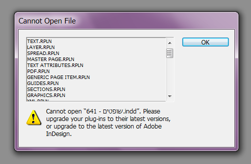 אני פותחת קובץ שנעשה במחשב אחר בתוכנת אינדיזיין והוא נותן לי את ההודעה הזו