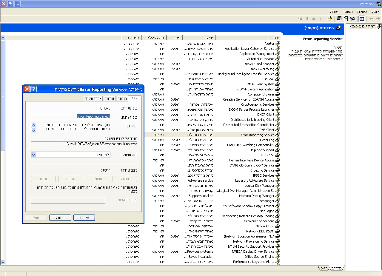 יפתח לכם חלון שירותים גשו בעמודת שם לשירות Error Reporting Service