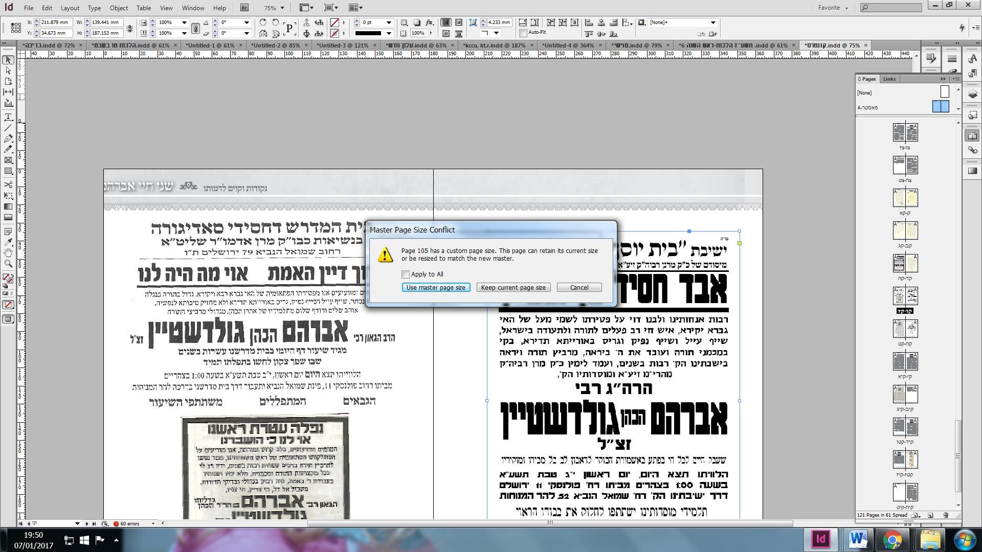 או להתאים את גודל העמוד או לעשות מאסטר חדש
