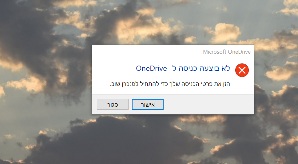 מה זה לא בוצעה כניסה ל OneDrive? ומה עושים?