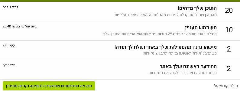 קבלתי התראה שהמוניטין שלי באתר התקדם