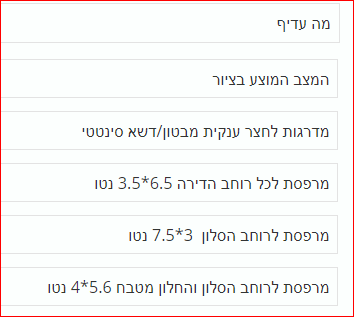 • מרפסת לרוחב הסלון 3*7.5 נטו