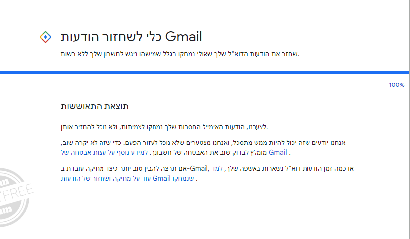 נכנסתי לקישור וזה ההודעה שקיבלתי לאחר ביצוע השחזור יש עוד תקווה ????אני לחצתי עכשיו על הקישור הנ"ל https://support.google.com/mail/workflow/9317561?hl=en