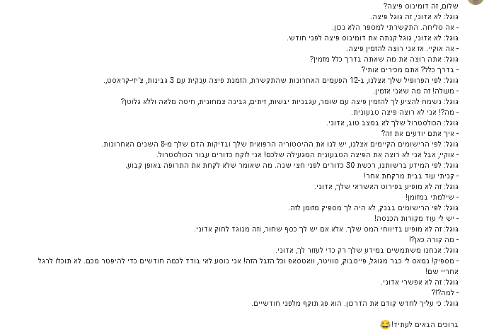 3. פניתי לפרוג לשורות החיפוש, ראיתי שם עצה להיעזר בצ'אט של גוגל, אבל זה רק למנויים (80 ש"ח שנתי, עבור 100GB אחסון), עשיתי מנוי, ואחרי הסתבכויות שאלתי את הפורום עזרה של גוגגל שהבטיח לי תשובה תוך 24 שעות.