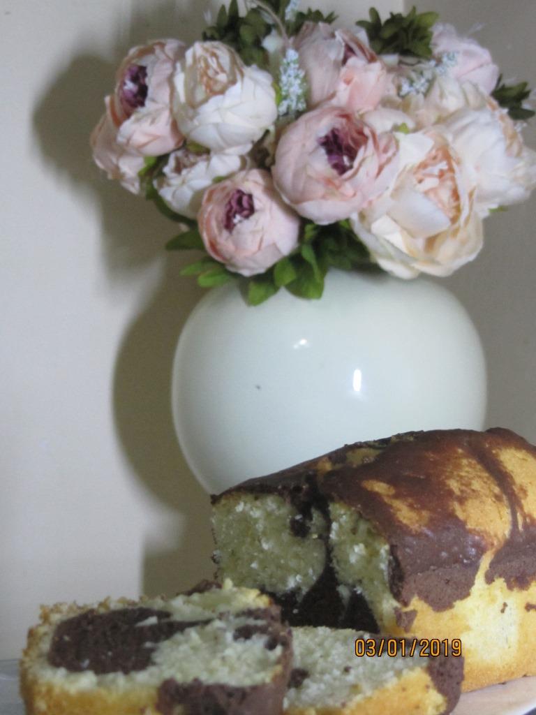 מה 1/2 השני מעברים כ-2 שליש לתבנית אינגליש קצרה. ליתרת הבלילה מוסיפים 2 כפות קקאו, 3 כפות סוכר ו-2 כפות מים. מערבבים היטב ומזלפים מעל לשכבה הלבנה. הבלילה תתערב פנימה ותיצור שיש.