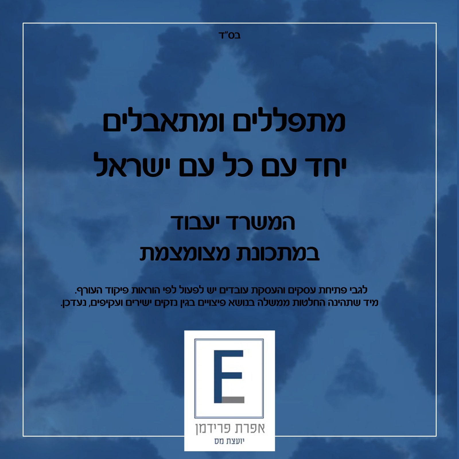 ממליצה לשלוח לכל הלקוחות הודעה על פעילות העסק בעת מלחמה. מצו"ב המודעה שאנחנו הוצאנו ללקוחות. זה מזכיר את קיומכם ונותן גב חזק לעסק.