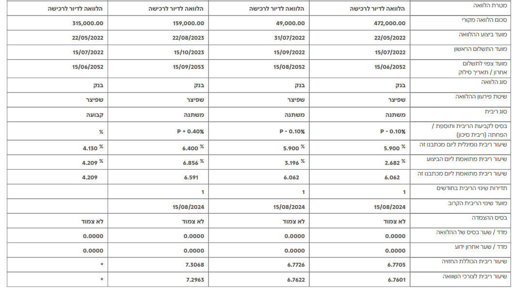 אשמח מאד לשמוע חוו"ד כללית על המשכנתא הנוכחית.