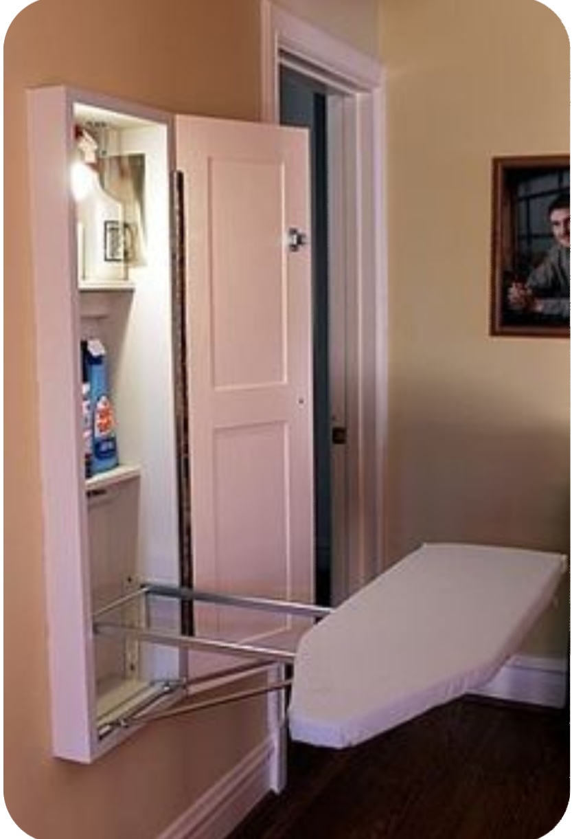 קרש גיהוץ נכנס בין הארון והקיר ברווח הצר שנוצר שם.