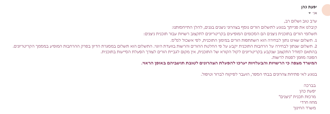 אוקיי הוא מוכן לפתוח בתוספת תשלום מההורים.מי שאחראי אצלכם על הנושא של הצהורנים במוסד