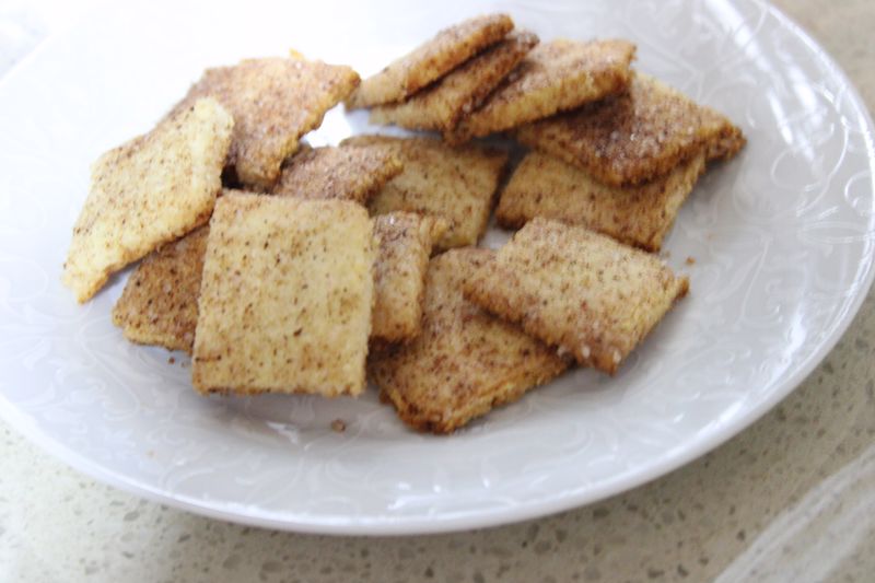 2 כפות סוכר ו-1 כפית קינמון ומפזרים על הריבועים