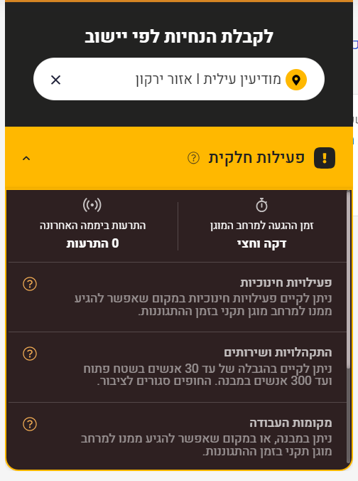 דרוש מידע מודיעין עילית לומדים ביום שני? יש הנחיות חדשות של פיקוד העורף, מה הצבע שלנו?