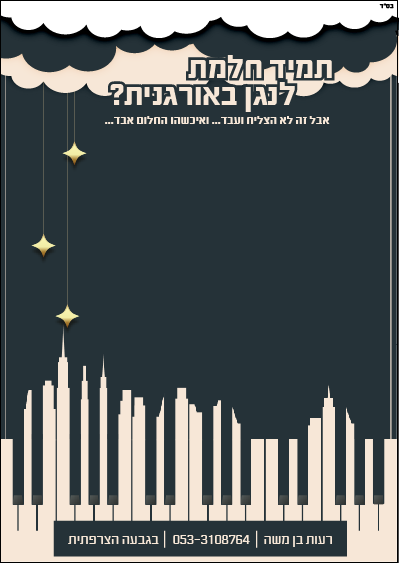 אולי אפילו הייתי מוסיפה סוג של ענן אביך / עשן שיוצא מהתו הכי גבוה בצד שמאל... כלומר חלום מעלה עשן... נושן, אבל עד למעלה הוא הופך למשהו חלומי ורך, אולי אפילו עם כמה תוים עדינים. (לא כוכבים גסים; )