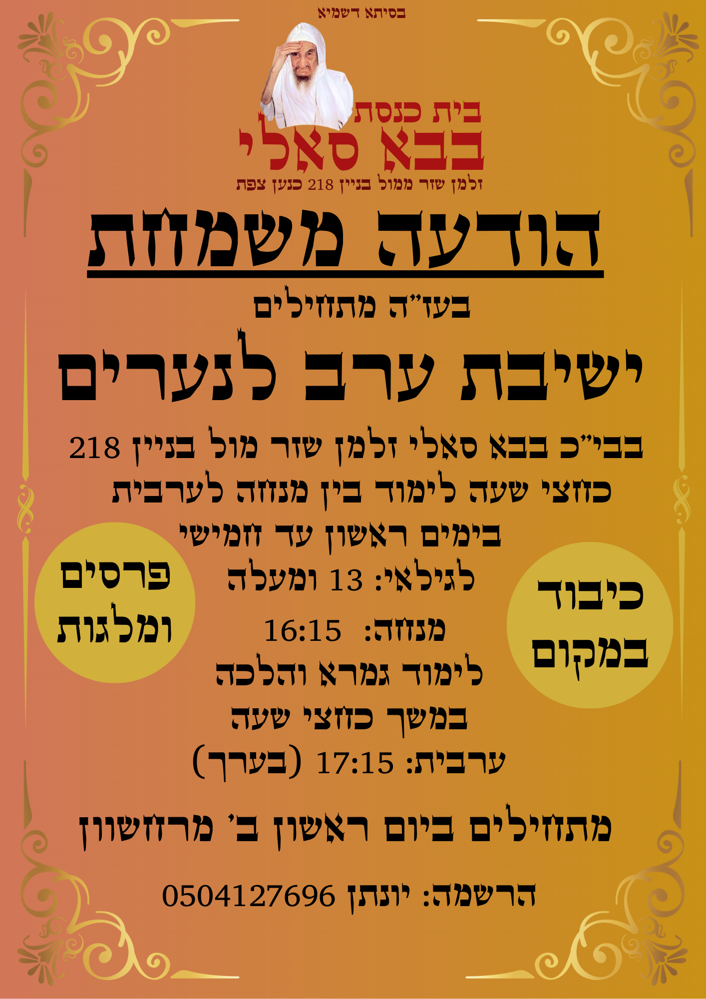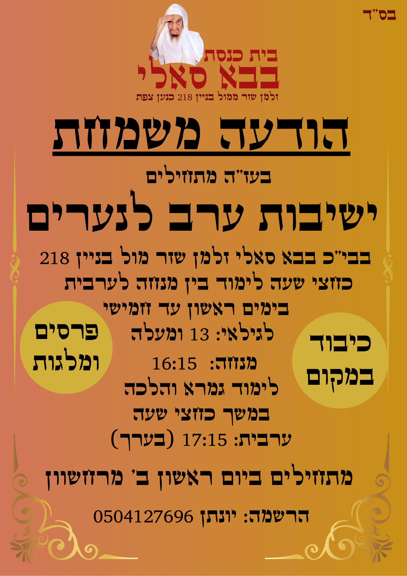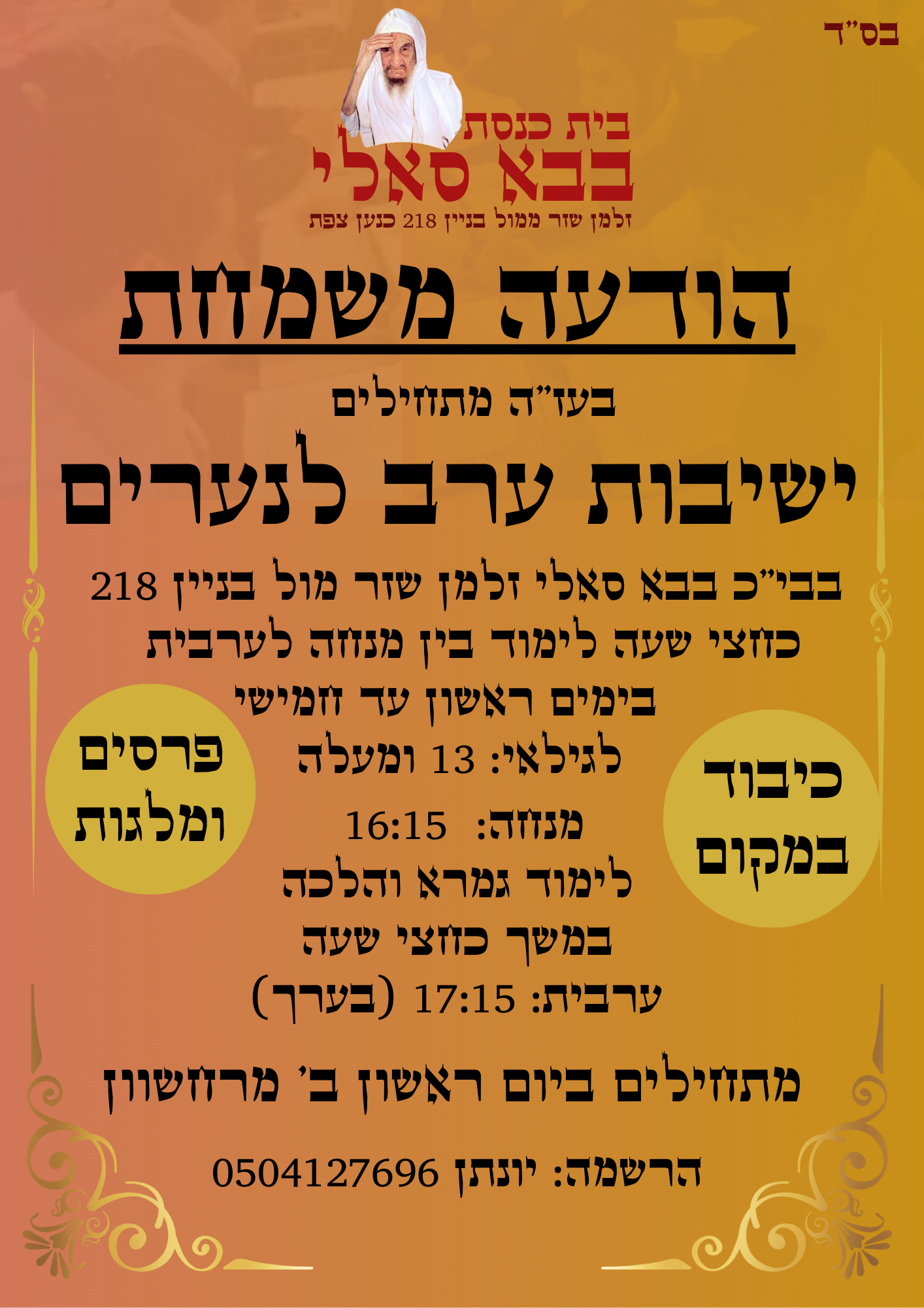 חוו"ד מודעה לישיבות ערב לנערים חוו"ד דחוף!