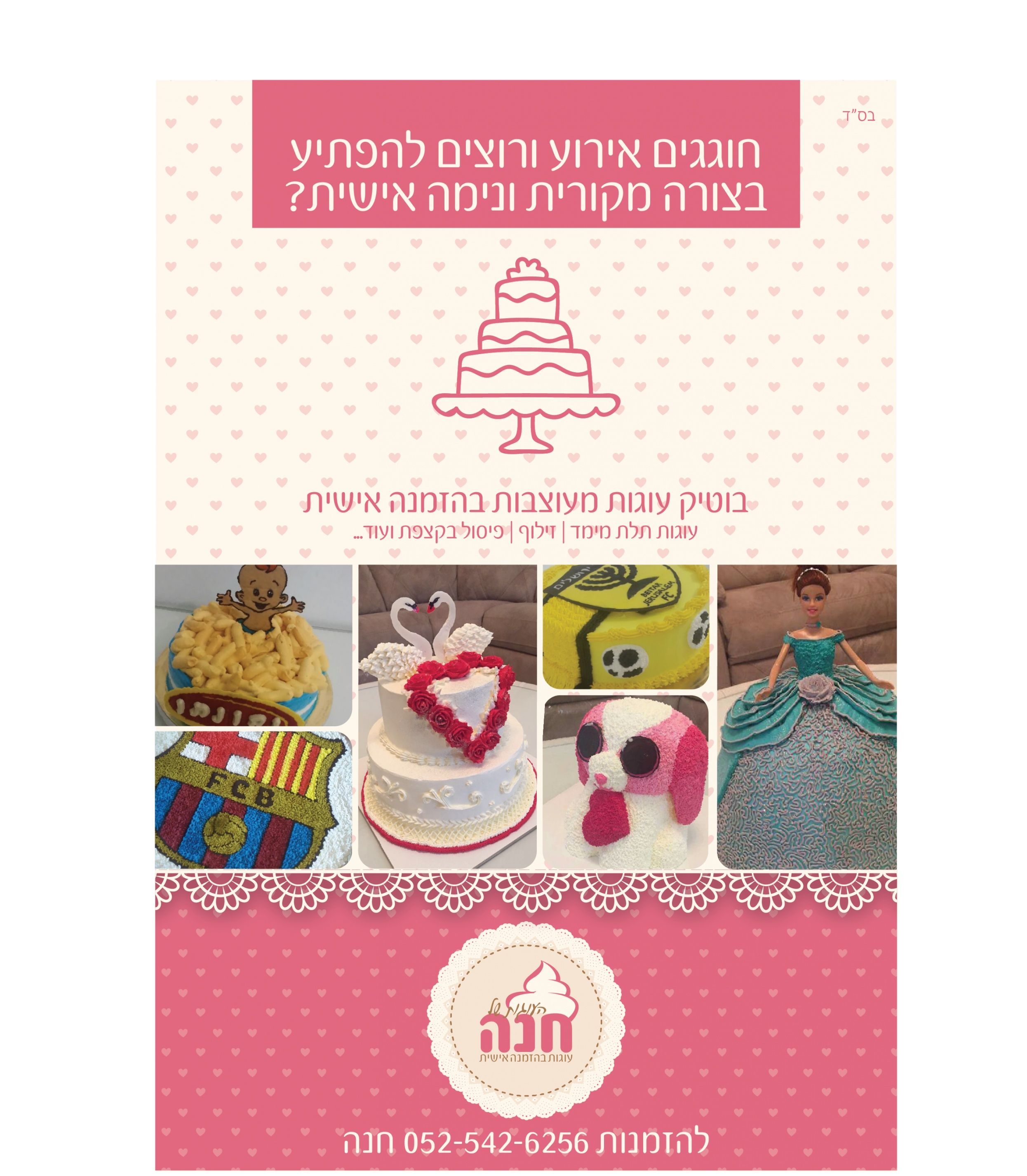 העוגות נעשות ע"פ הזמנה אישית של הלקוח