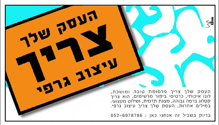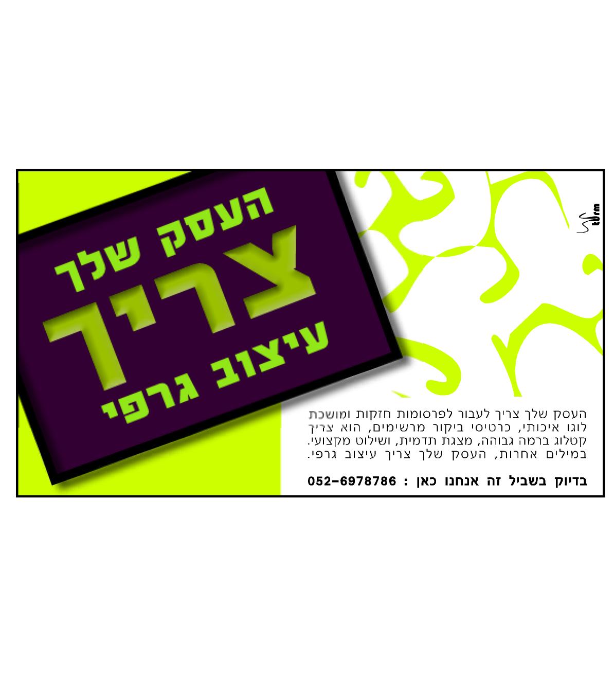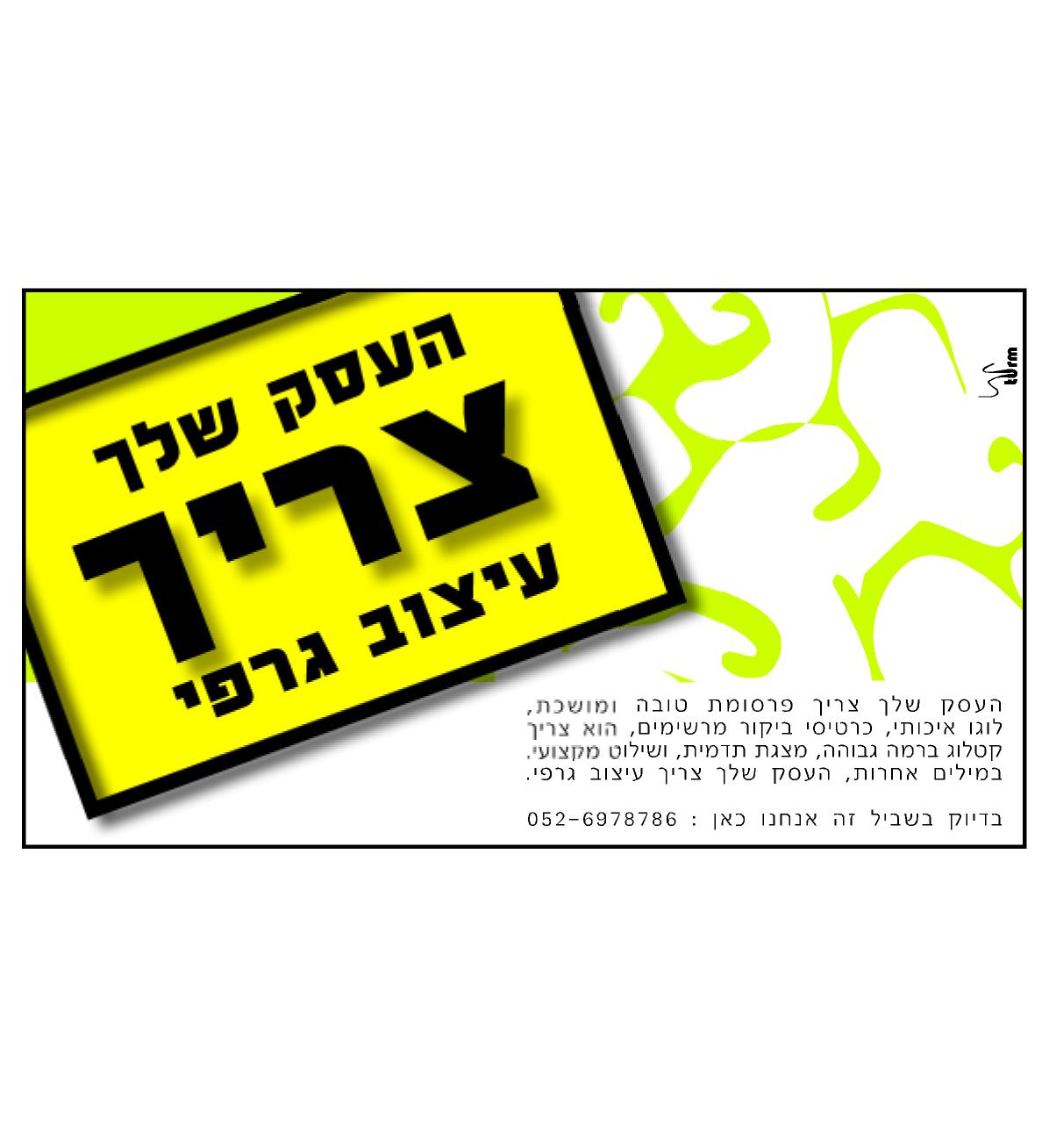 בכל אופן , גודל המודעה הוא לא גדול 13*8 בערך ולכן היה חשוב לי לשים כמה מילים בגדול מאוד אחרת פשוט לא ישימו לב