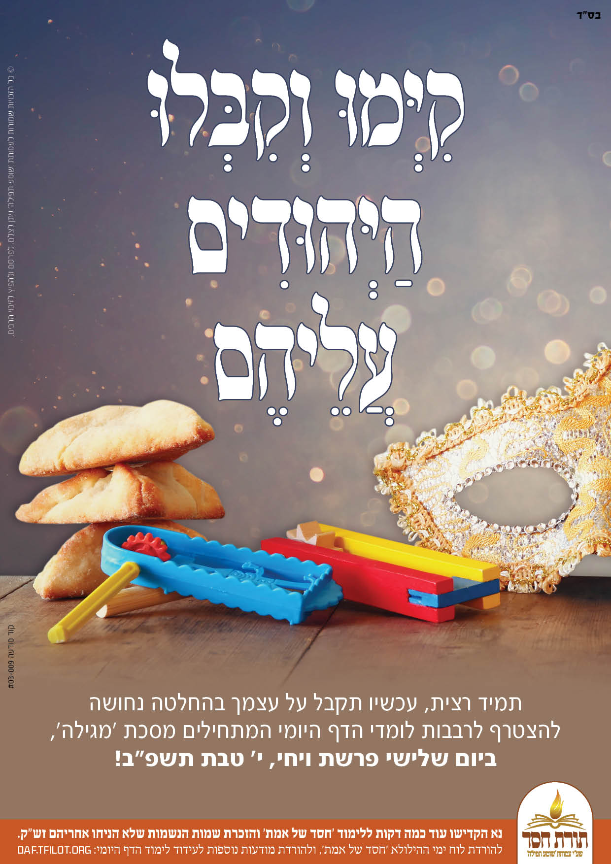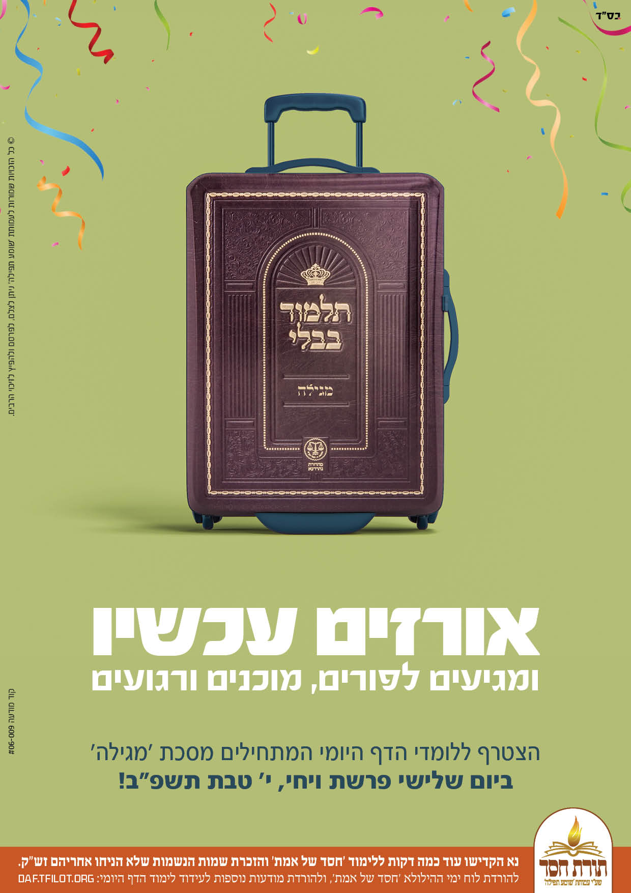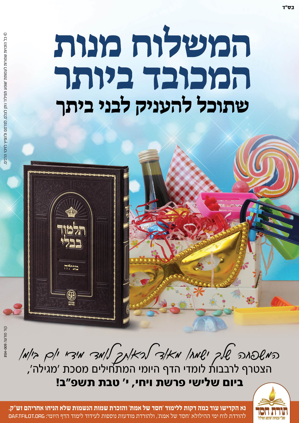פוסטרים נוספים על שאר מסכתות ופוסטרים לפי מעגל השנה, מתפרסמים באתר תורת חסד - https://daf.tfilot.org/