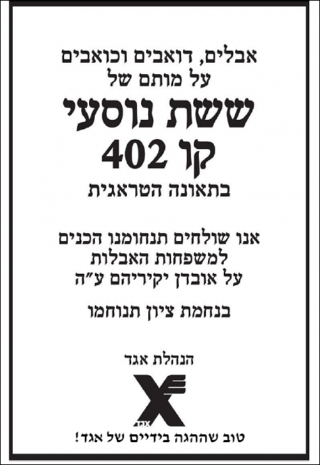 אני אישית מאוד מעריך את אגד על התחשבותם ברגשות המשפחות השכולות ולא פרסמו את המודעה ככה: