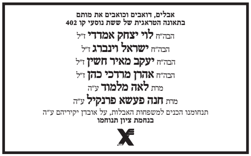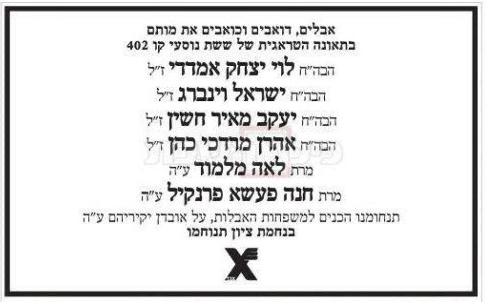 המשפחות האומללות, ההורים השכולים והילדים היתומים, לא ממש מתענינים בנוסח המודעה, זה לא יחזיר את יקיריהם ולא יועיל להם דבר.