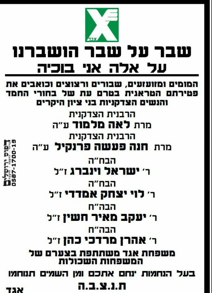 הפסיקו להתעסק במודעת אבל. הפסיקו להתפתות למילים, לניסוחים שגויים או לא שגויים. תמונה אחת שווה אלף מילים. תמונת מצב אחת שווה חיים שלמים של ששה אנשים שהיו ואינם עוד. אל תיטלו את הגה האחריות מהידיים של אגד.