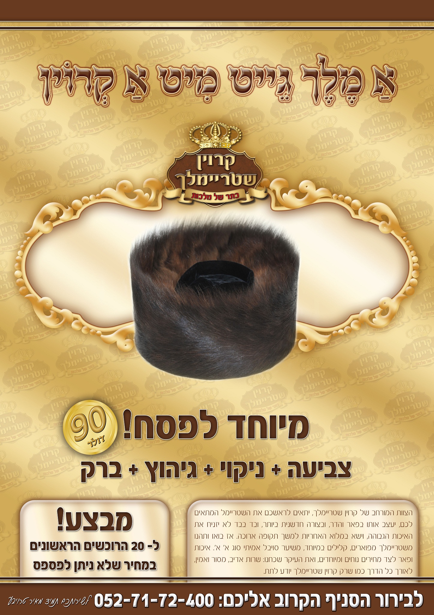 מודעה יוקרתית וחסידי...(מי הולך עם שטריימעל אם לא החסידים?:))