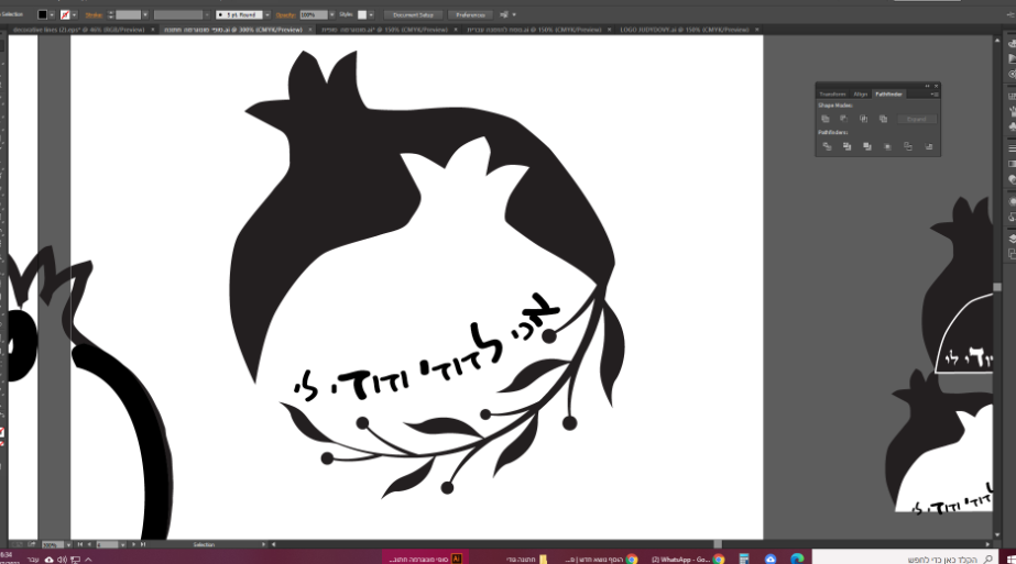 חתונה באלול. חשבתי על אתרוג והלקוחה אהבה. לאחר אינספור ניסיונות עם אותיות באנגלית ובעברית בתוך הרימון הלכתי על מראה נקי של 2 רימונים לחתן וכלה והפסוק שהיא ביקשה. איך אפשר לשדרג את הנ"ל?