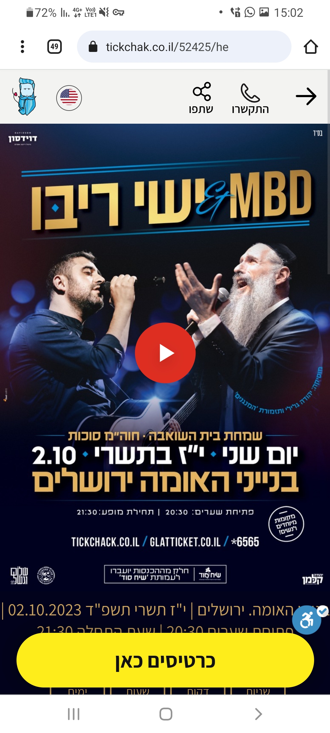 לרכישת כרטיסים ולשמיעת השיר לחצו https://tickchak.co.il/52425/he