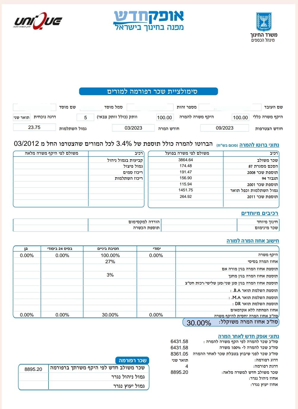 לכאורה הוא אמור לקבל עוד 2.5% למקדם ההמרה (מקדם של מחנך ביסודי- 20%+12.5% תוספת ז-ח).