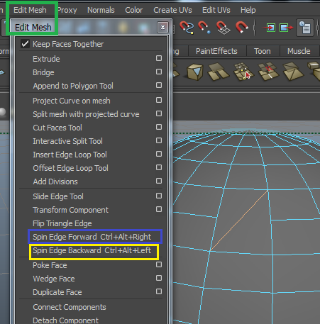 הסבר - ניתן לסובב את ה - Edge קדימה (מסגרת כחולה), או אחורה (מסגרת צהובה), כדי לשנות את מבנה ה -mesh.