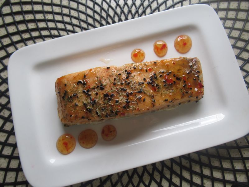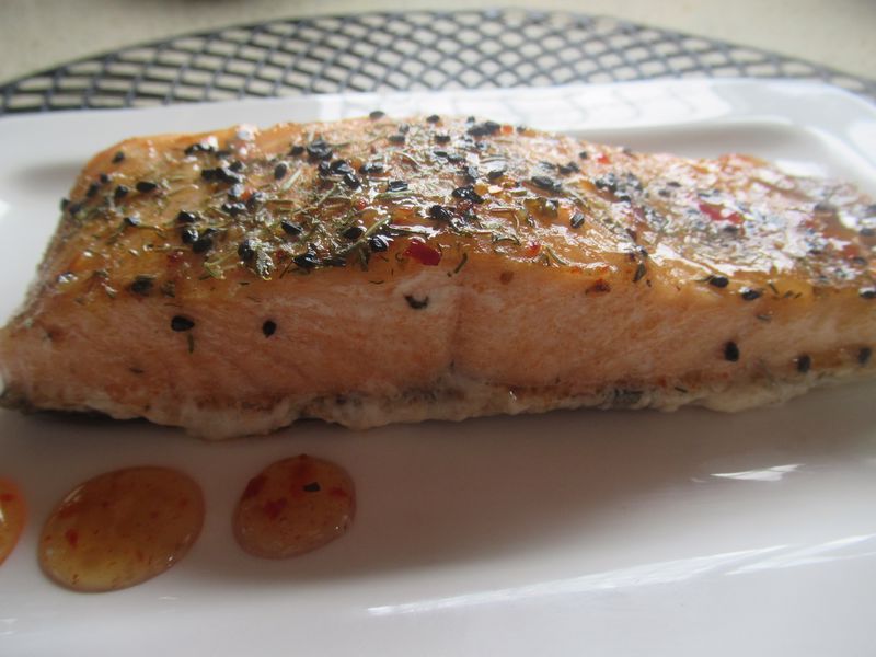 מושט עם נגיעות חריפות [חריף ממש לא יעבור בגרון של חלק מדיירי הבית] וסלמון מתקתק בעשבי תיבול וקצח.