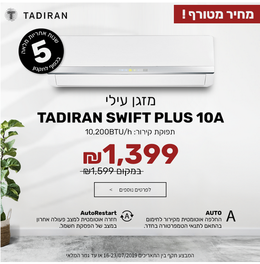 מזגן מזגן תדיראן סוויפט פלוס 10A, מומלץ? 1400 - זה מחיר טוב?