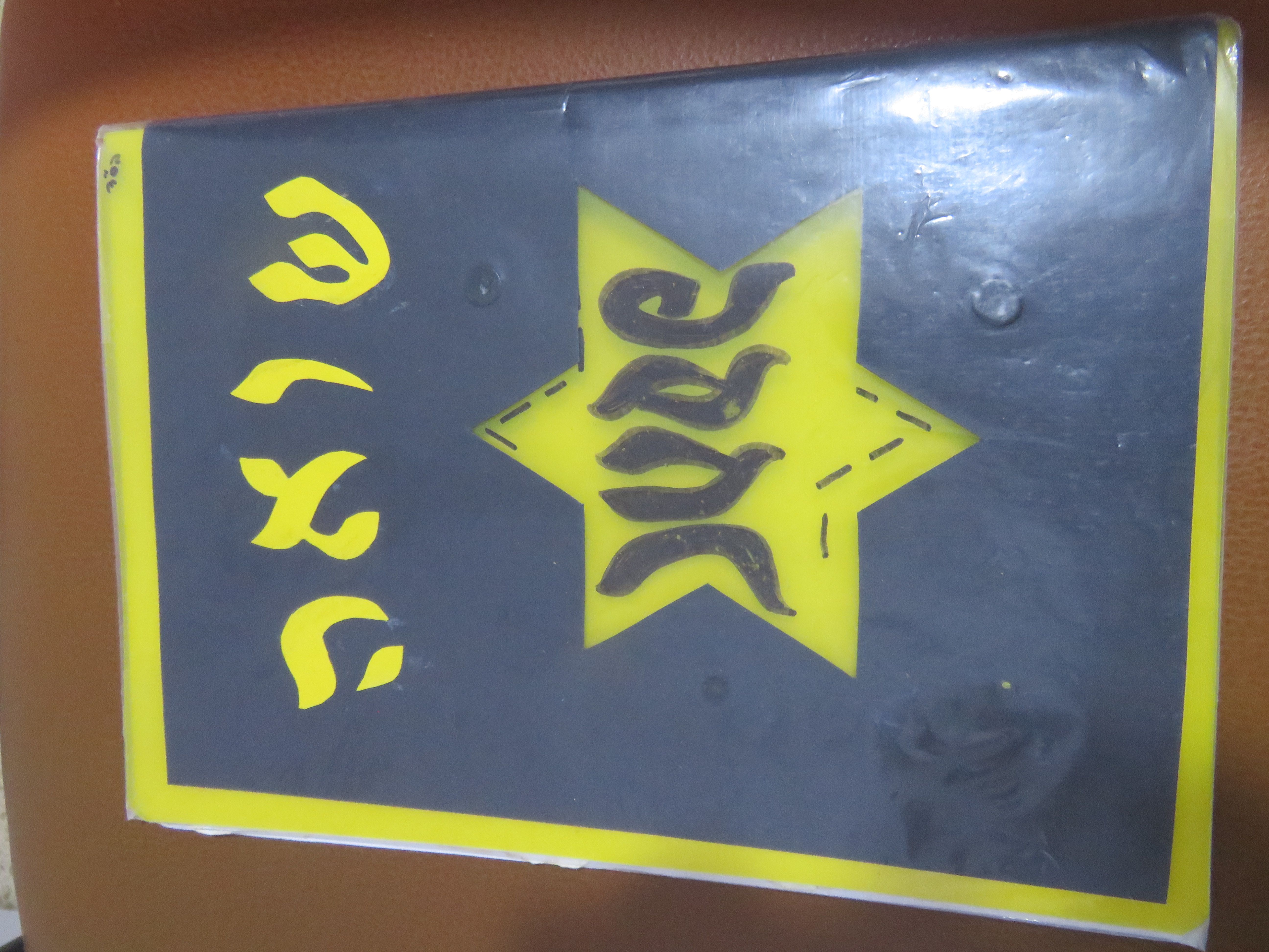 גזרנו כוכב בבריסטול השחור ואז כתבנו עם לורד ארטליין שחור על המחברת JUDE