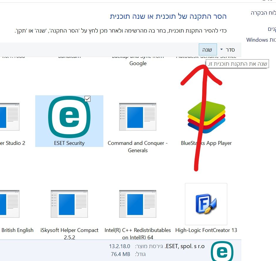אחרי הבחירה של 'שנה' , ככל הנראה יפתח התפריט של התוכנה עצמה עם אופציה של הסרה