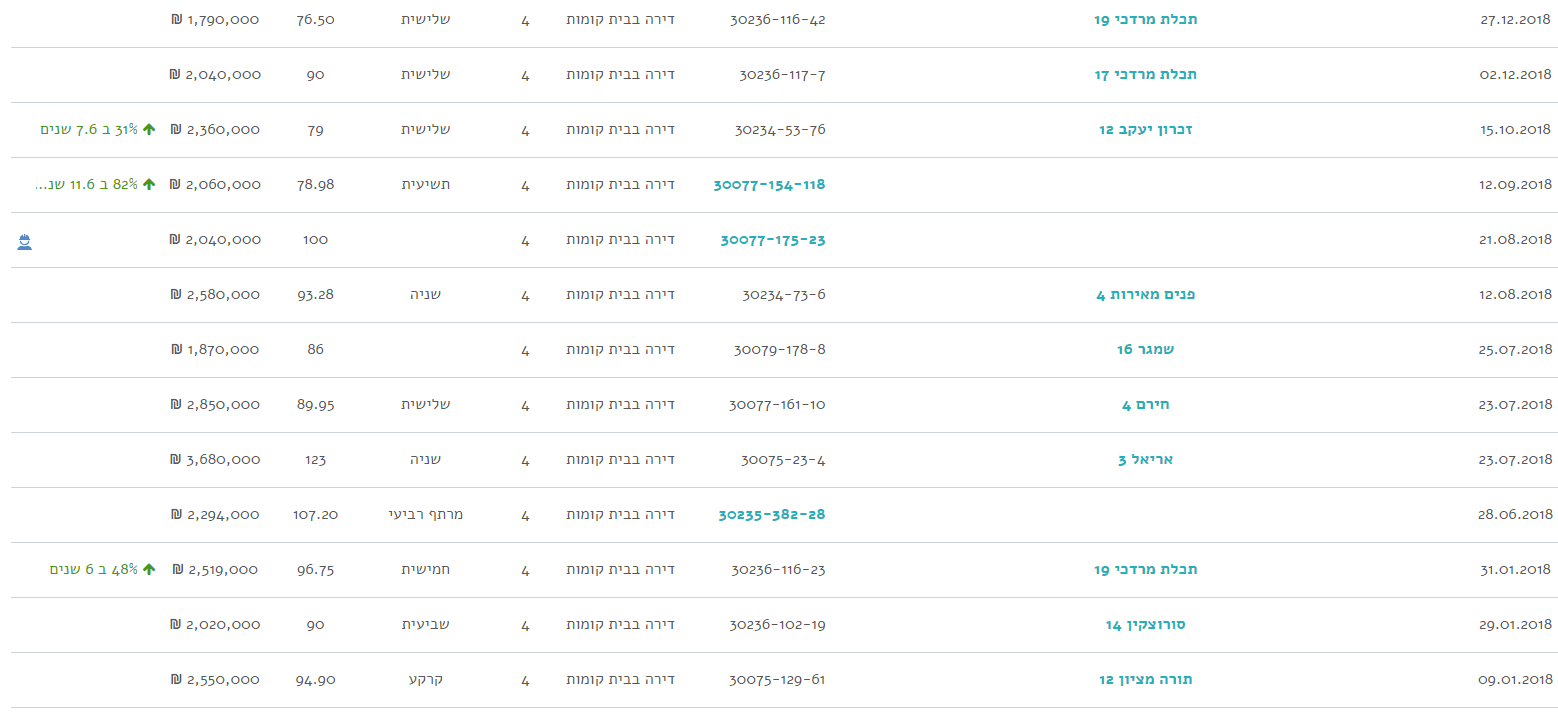 ובשנת 2018 רוב המכירות הן של דירות הרבה יותר גדולות, (רוב הדירות מעל 93 מ"ר, כשחלק ניכר מהן מעל 100 מ"ר)