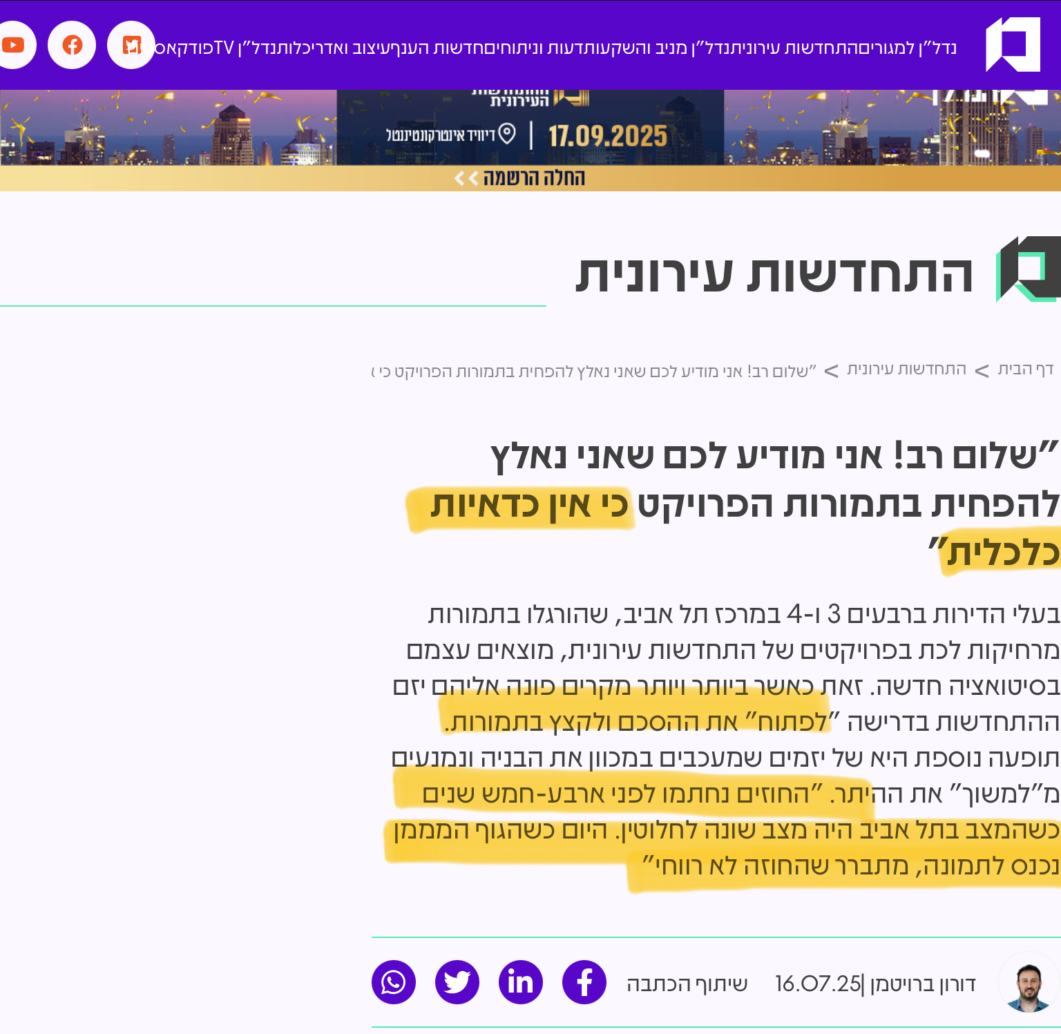 "במיוחד בתל אביב – בעלי הדירות דורשים מהיזמים תמורות גבוהות והיזמים נעתרים להם, כך שמלכתחילה