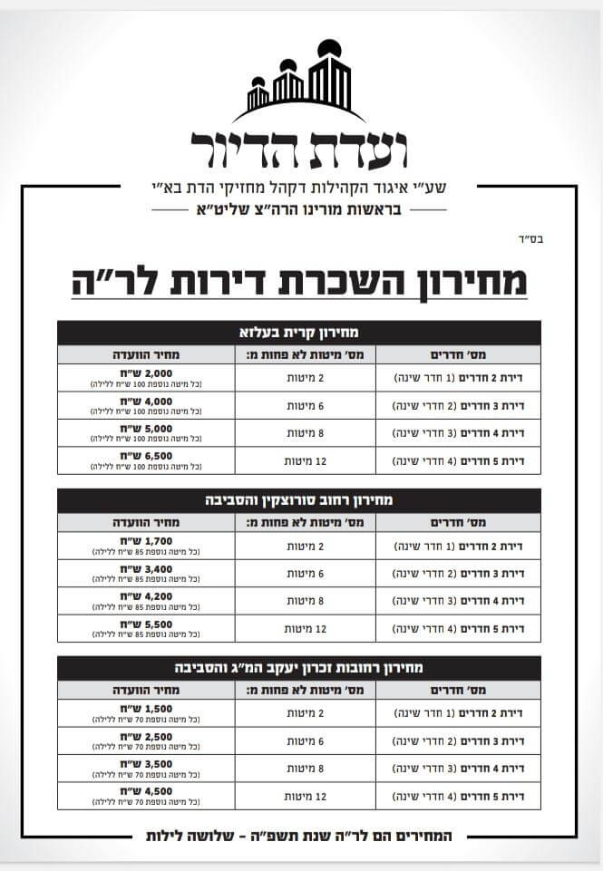 מידע שימושי מחירי שכירות דירות לחגים תשפ"ה בירושלים